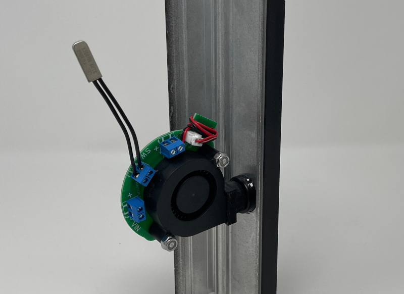 Experimental solution for outdoor signs mounted in high heat/direct heavy sunlight designed to actively vent hot air from the enclosure