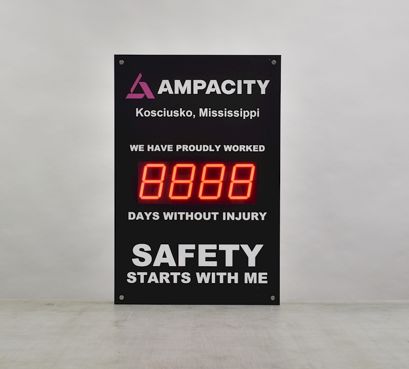 36"h x 24"w Accident Free Workplace Sign with One 5" 4 Digit Display