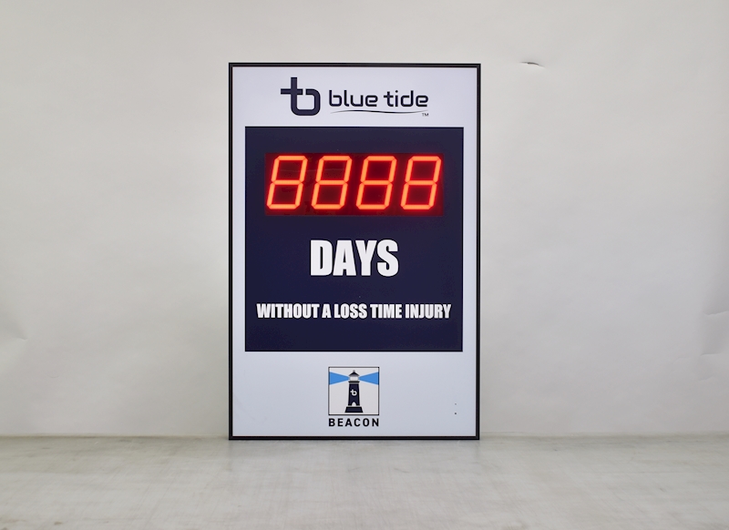 Many people subscribe to the philosophy of, “What gets measured, gets done."  An organization that promotes safety performance daily demonstrates that safety is valued. An effective way to promote your safety metrics is with this 36" high by 24" wide safety scoreboard with integrated 5" LED safe days counter.  The four digit day counter will automatically update the current count by one each night at midnight so you don't need to worry about updating the sign each workday.