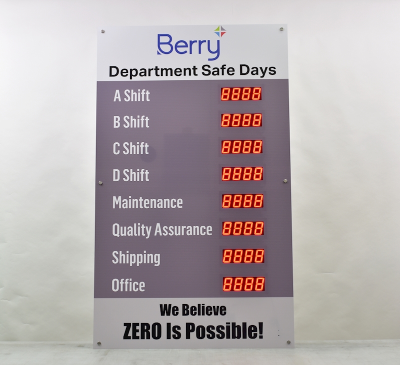 36"h x 24"w Electronic Safety Sign with Five 2.3" 4 Digit Displays