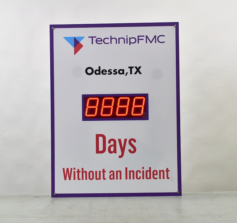 Proudly display your days without accident on the large 5” display that will automatically increment each days.  Easily customize layout, graphics, and text on this sign online.