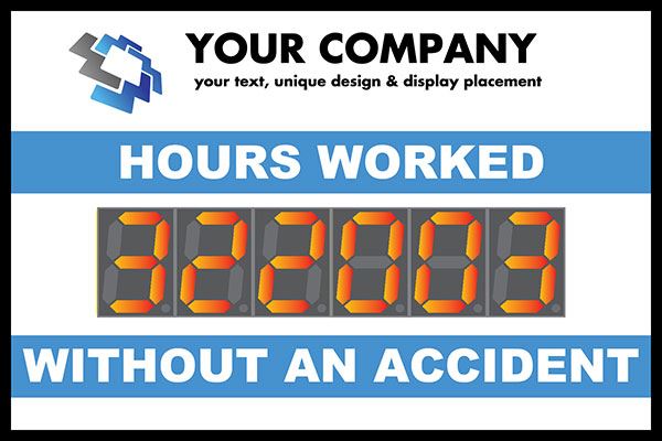 The extra large counter display makes this days without accident sign pop.  Medium sized sign with five inch digit height automatically tracks your safe days or hours worked.