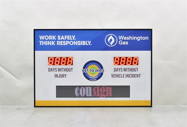 24"h x 36"w Says Without Accident with Two 2.3" 4 Digit Displays and 2" Scrolling Message Display