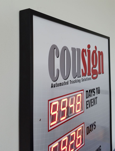 A sleek looking Black Frame that encloses your sign. Nice cosmetic upgrade vs. tranditional standoff mounting.