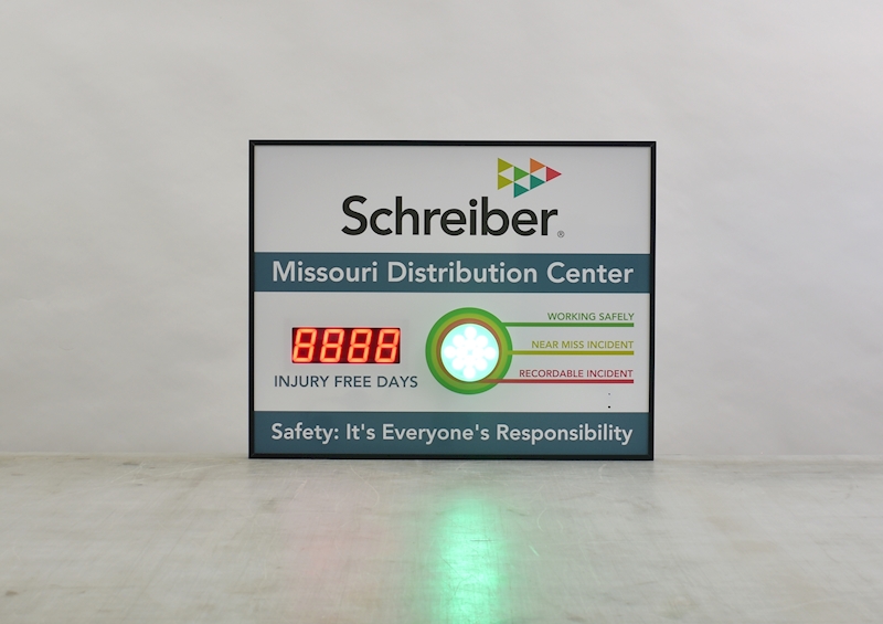 With so many programming options you can make this counter display just about anything.  The most common use for this counter is to track safe days worked, but we've had people use this counter to track days until a project deadline, number of environmental incidents, static price display, and many more. The logic is simple.  Tell the sign how often you want to count, what direction to count, and how much to count by each time it counts.  Then simply set a current count, and the counter will begin following your instructions.  The configuration is stored in flash memory so if the power goes out, you won't need to reconfigure it.