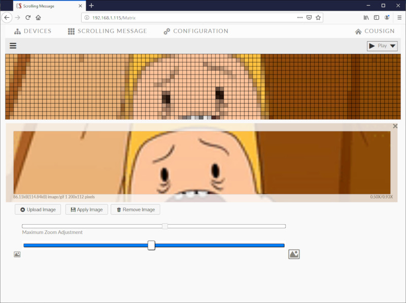 Add network control to any of our signs. This module connects to your ethernet network and provides a webpage where you can easily configure the various settings for each of the display modules integrated into your sign. The responsive layout of the webpages will adapt to display nicely on mobile phones connected to your network via WiFi.