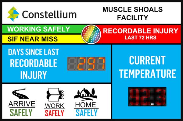 With so many programming options you can make this counter display just about anything. The most common use for this counter is to track safe days worked, but we've had people use this counter to track days until a project deadline, number of environmental incidents, static price display, and many more. The logic is simple. Tell the sign how often you want to count, what direction to count, and how much to count by each time it counts. Then simply set a current count, and the counter will begin following your instructions. The configuration is stored in flash memory so if the power goes out, you won't need to reconfigure it.