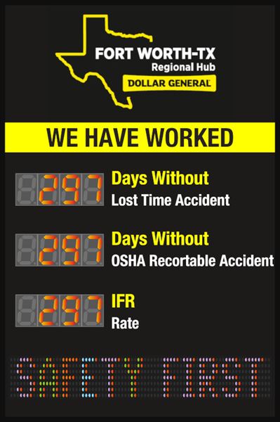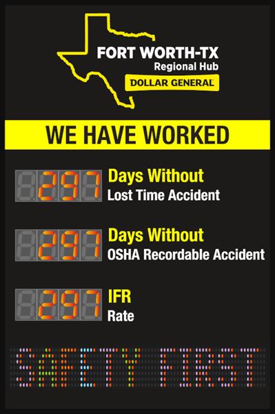 36"h x 24"w Safety Sign with Three 2.3" Displays and scrolling marquee.